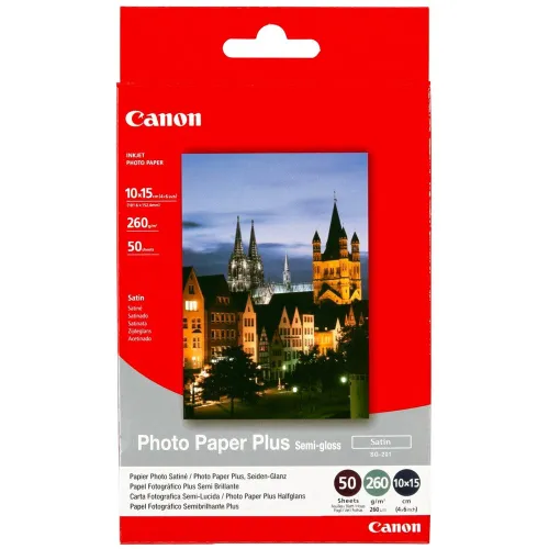 Le papier photo plus semi-brillant de Canon est un papier au fini satiné avec la texture d'un vrai papier photographique. Ce papier de haute qualité produit des photographies brillantes avec une brillance réduite pour une finition plus douce.