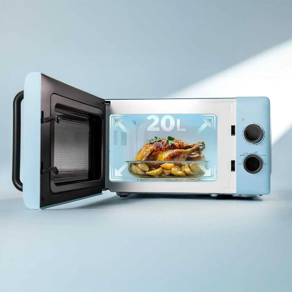 - Avec sa capacité de 20 L et son design compact, ce micro-ondes maximise son espace intérieur, devenant l´allié parfait pour préparer vos plats préférés avec un confort total.