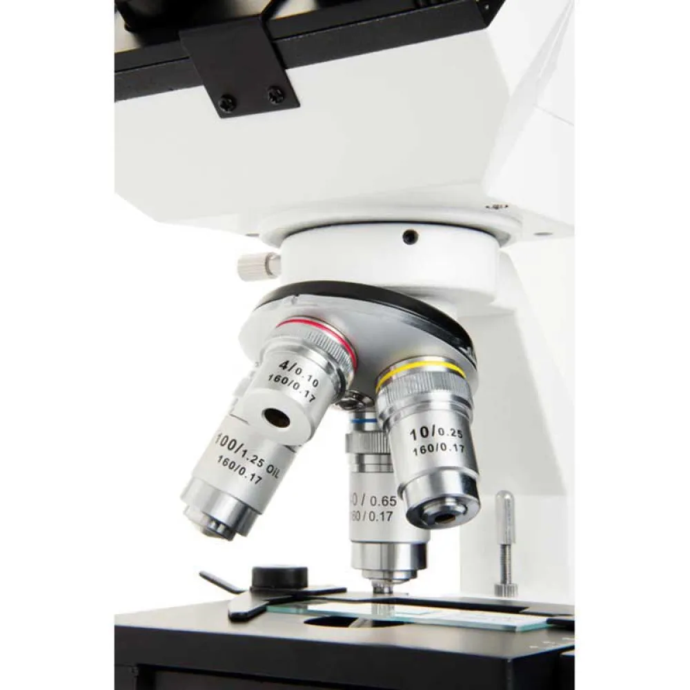 - 4 objectifs entièrement achromatiques - 4x, 10x, 40x, 100x.