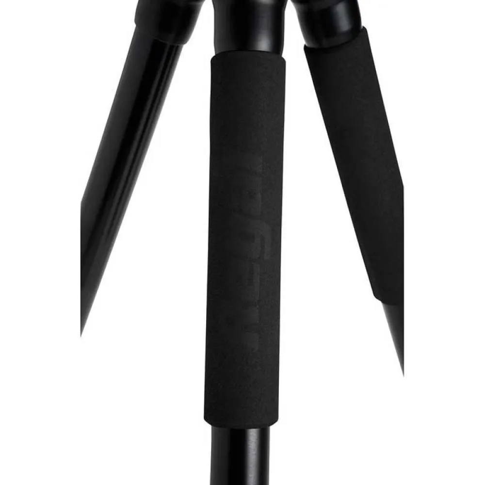 Deux des pieds sont équipés de housses rembourrées, qui protègent votre épaule lors du transport et rendent les réglages plus confortables par temps froid. Les pieds sont également équipés de pieds à pointes rétractables avec la possibilité de passer de pieds en caoutchouc à pieds à pointes si le terrain l´exige en tournant simplement le coussin en caoutchouc.D´autres caractéristiques comprennent des niveaux à bulle, situés sur le dessus du trépied ainsi que sur le côté de la tête panoramique, et un étui de transport. L´étui est l´endroit idéal pour ranger votre trépied lorsqu´il n´est pas utilisé et le rend facile à transporter grâce à la bandoulière.