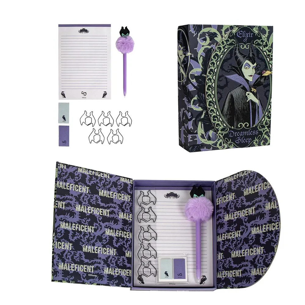 Ensemble de papeterie Maléfique, mesurant 15.0x21.0x3.5 cm, multi-composition.