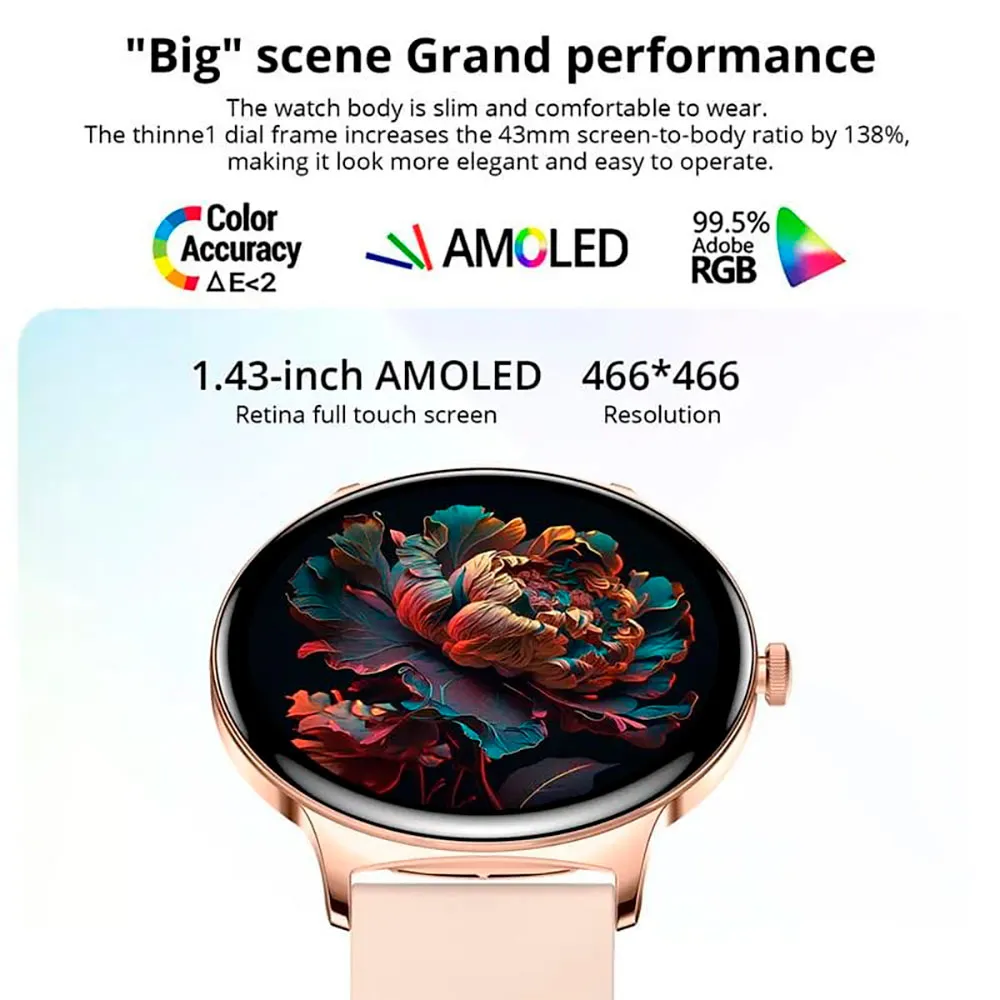 Colmi V89, en or, montre connectée ultra-fine de 1.43 pouce, longue autonomie et avec bracelet en métal.