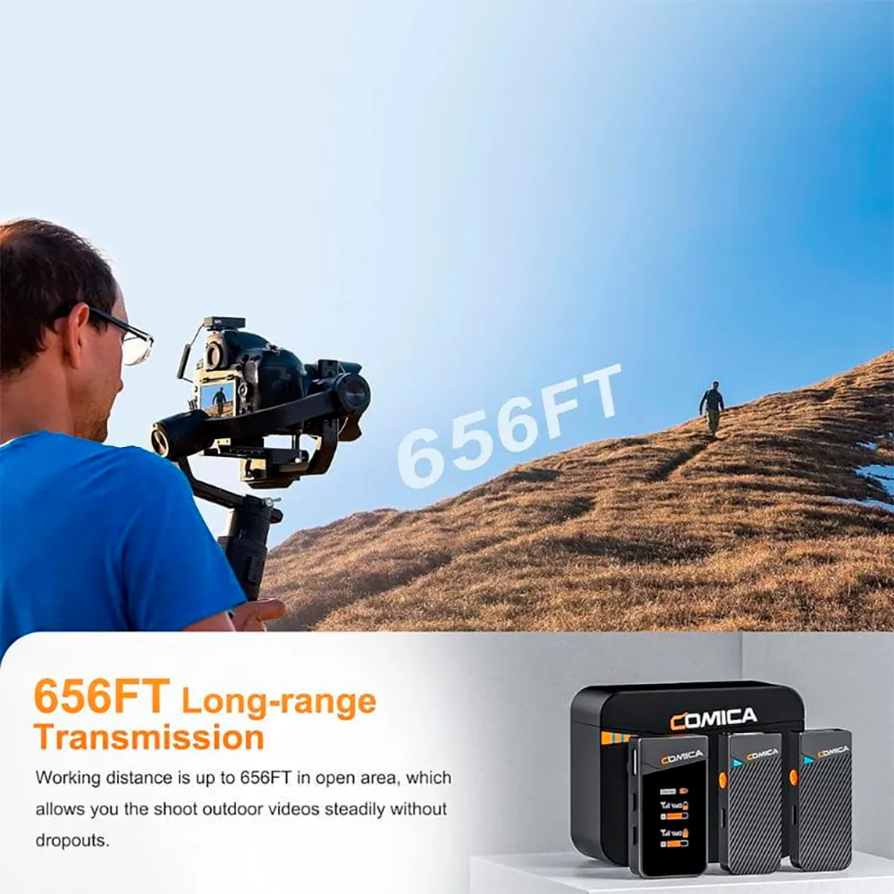 Avec une transmission numérique 2.4 GHz et une latence < 20 ms, ce système double capture un audio 48 kHz/24 bits avec une portée réelle allant jusqu´à 200 m en extérieur.