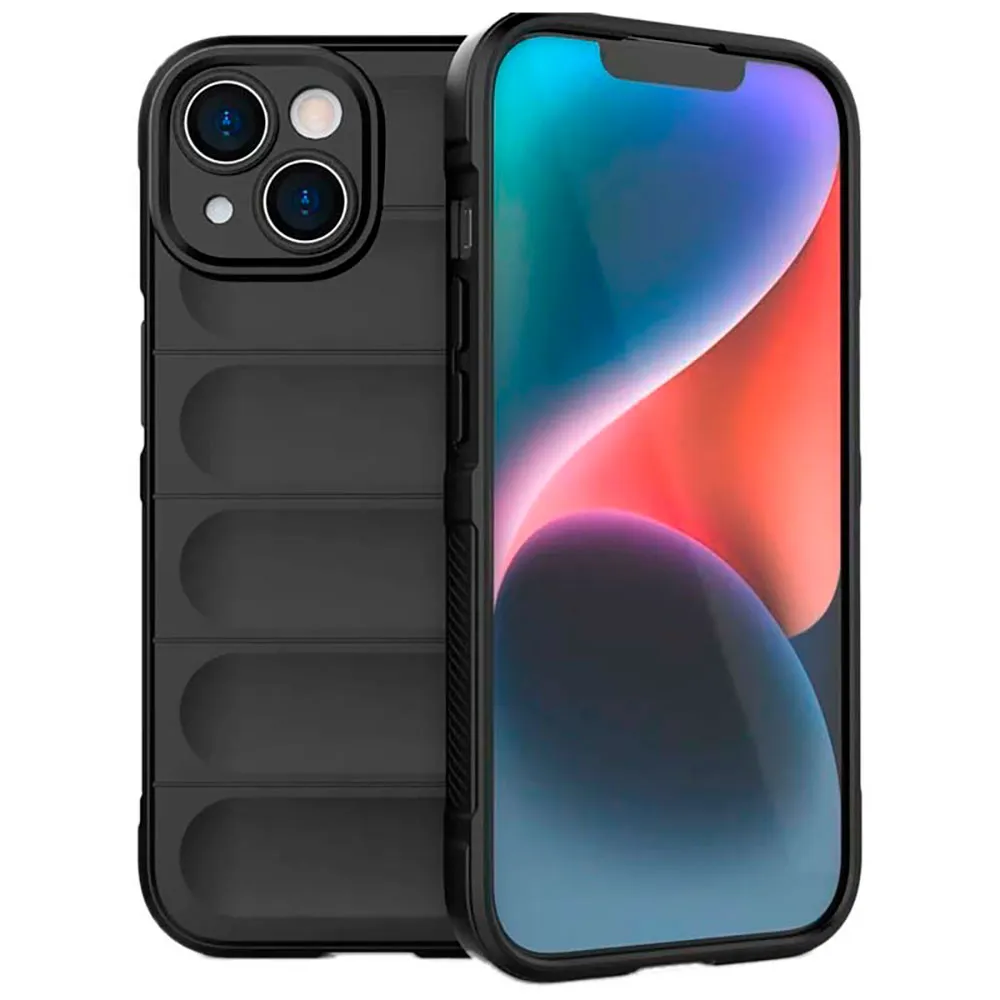 Caractéristiques de la coque en silicone noire Wave pour iPhone 15 :.