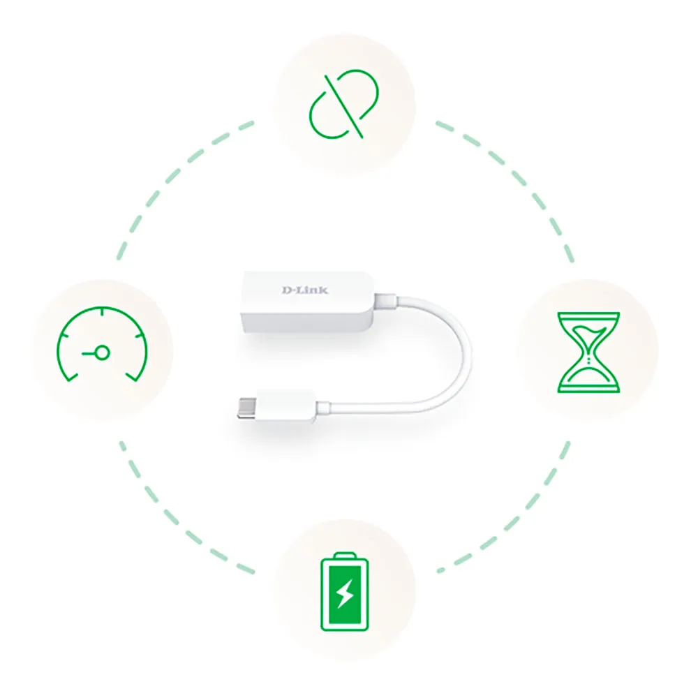 L´alimentation de l´adaptateur est fournie directement par le port USB Type-C et prend non seulement en charge les fonctions d´économie d´énergie de la norme USB 3.0, mais comprend également une fonction de mise en veille et de reprise économe en énergie afin de minimiser la consommation d´énergie lorsque le trafic réseau est faible, que l´appareil est inactif ou que le câble Ethernet est débranché.