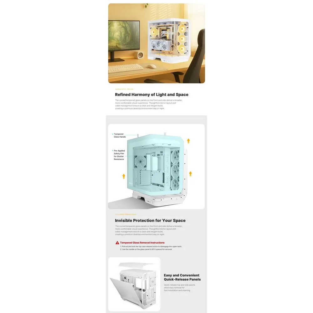 Transformez votre configuration PC en une œuvre d´art avec le grand boîtier tour PC ATX DARKFLASH DY570. Conçu pour les passionnés qui exigent à la fois une esthétique époustouflante et des performances sans compromis, le DY570 brise les frontières de la conception de boîtier traditionnelle. Sa vue panoramique révolutionnaire à 270 degrés, créée par des panneaux de verre trempé avant et latéraux sans joint, offre une vitrine totalement dégagée pour vos composants haut de gamme, transformant votre plateforme de jeu ou votre station de travail en une pièce maîtresse époustouflante.
