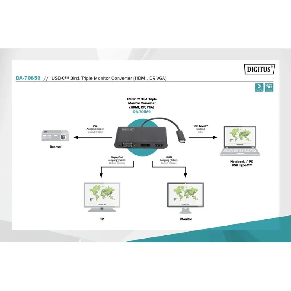 Interfaces Hub: DisplayPort, HDMI, VGA.