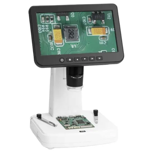 Main Features:* Large 7-inch high-definition IPS LCD screen for direct viewing * Full HD 1080p video recording and high-resolution photo capture * Advanced dual-illumination system with 8 main LEDs and 2 flexible side lights * Adjustable brightness control for optimal lighting conditions * HDMI output for connecting to external monitors and projectors * USB connectivity for PC/Mac with measurement software support * Standalone operation with image and video saving to a Micro SD card * Sturdy, height-adjustable metal stand for stability and versatility * Included infrared remote control for shake-free operation * Rechargeable battery for portable, field-ready use