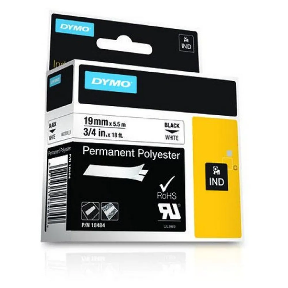 DYMO ID1, 18484, Étiquette polyester DYMO, Étiquette 19 mm, Étiquette Rhino, Étiquette industrielle, Étiquette non adhésive, Étiquette de câble, Marqueur de fil, Étiquette d´actif, Consommables PDV, Étiquette à transfert thermique, Étiquette durable, Étiquette d´équipement, Consommables DYMO, Étiquette résistante aux intempéries, Étiquette résistante aux produits chimiques