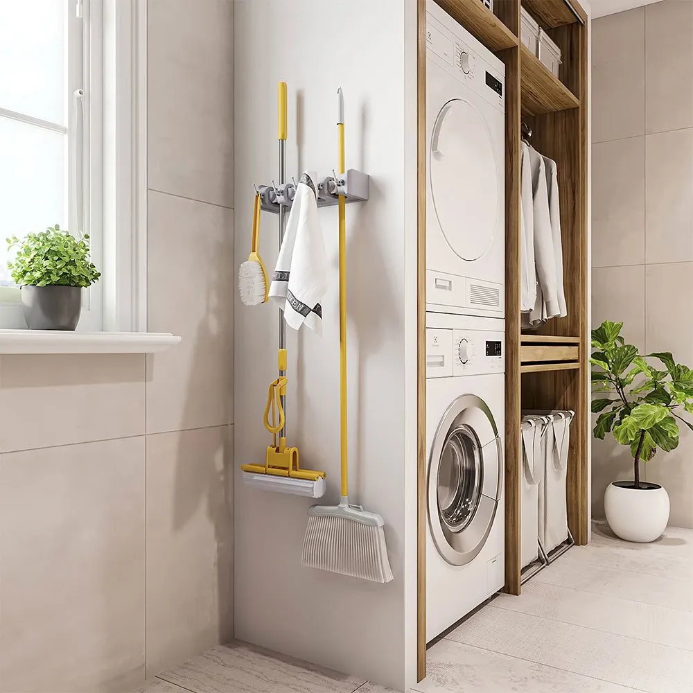 - Porte-ustensiles de nettoyage pour suspendre des éléments tels que des balais, des serpillières, des pelles à poussière ou des torchons.