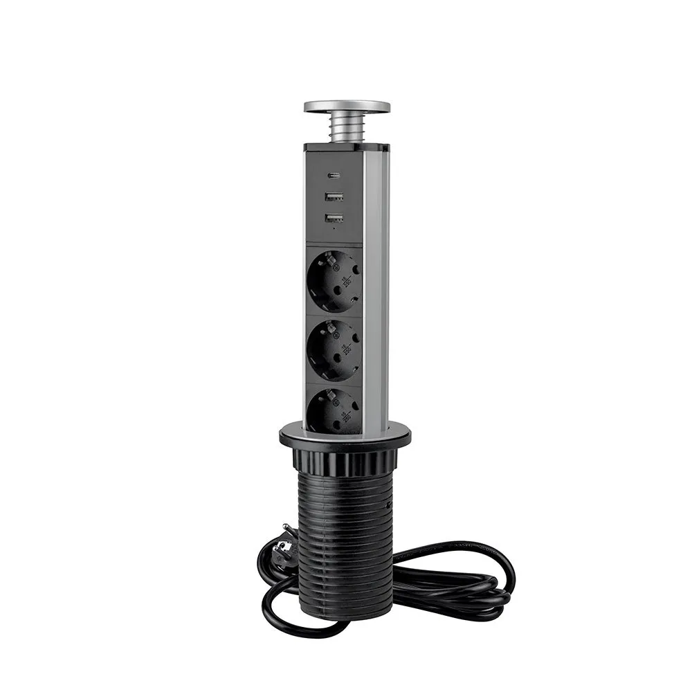 Le connecteur multiprise ou la tour de prises escamotable est conçu pour ajouter de la fonctionnalité grâce à son intégration complète dans les meubles de cuisine, de bureau et de maison.