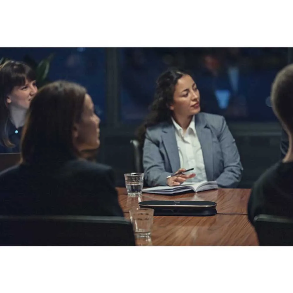 Un haut-parleur puissant à très faible distorsion dans un boîtier de haut-parleur suspendu unique en instance de brevet remplit la pièce d'un son exceptionnel, permettant des performances duplex supérieures qui permettent un discours simultané