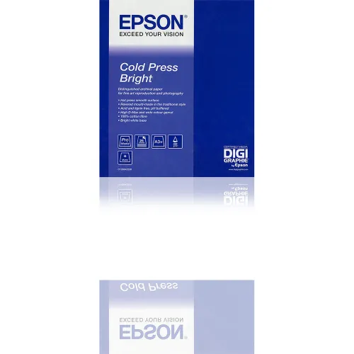 Les artistes et les photographes ont besoin d'une variété de supports médiatiques pour leur travail professionnel. Epson est fier de présenter son dernier papier coton pour l'impression numérique, Cold Press Bright Paper. Avec une base 100% chiffon de coton, tamponnée et sans acide, ce papier est enduit de notre revêtement spécialement conçu, donnant une gamme de couleurs exceptionnelle et un D Max élevé lorsqu'il est utilisé avec les encres Ultrachrome d'Epson.