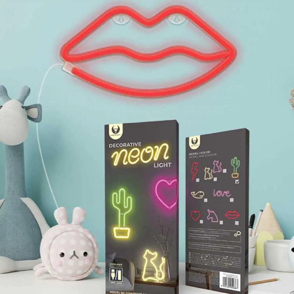 Forever Light LED Neon Light. Forever Light LED Neons will add a beautiful colorful glow effect to your space. They are ideal as decoration on shelves in the living room or as decorative lighting in children´s rooms. The neon holder allows lighting to be hung on vertical surfaces. These neon lights are the perfect choice to improve the atmosphere of restaurants, bars and other spaces, where the colors will stand out in a unique way. The distinctive feature of these neon lights is their uniform light dispersion, without noticeable light spots. Thanks to LED technology, the neon lights consume relatively little electricity and can be powered with 3 AA batteries or via a USB plug. Available in a variety of shapes and colors the device is made of white plastic, and dimensions vary depending on the type of drawing.