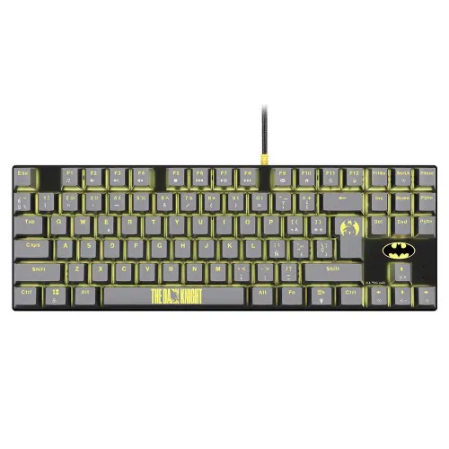 Le clavier de jeu Batman™ est mécanique avec des interrupteurs bleus, doté d´un clic distinctif qui assure la réactivité du clavier et garantit une plus grande durabilité. Il comprend un rétroéclairage sur les touches et plusieurs modes accessibles depuis le clavier, offrant une expérience personnalisée en fonction de vos besoins. Son design compact TKL permet de disposer de plus d´espace pour déplacer confortablement la souris. Le câble tressé est sans enchevêtrement et protège également les connexions, ce qui les rend plus durables. Avec des détails représentatifs de Batman™ sur les touches Entrée et Espace, donnant au clavier une touche authentique du personnage, ce qui en fait un élément indispensable pour les fans et les joueurs. Compatibilité multiplateforme complète : PC, Mac, PS5™, Switch™, Xbox™ Series X/S.