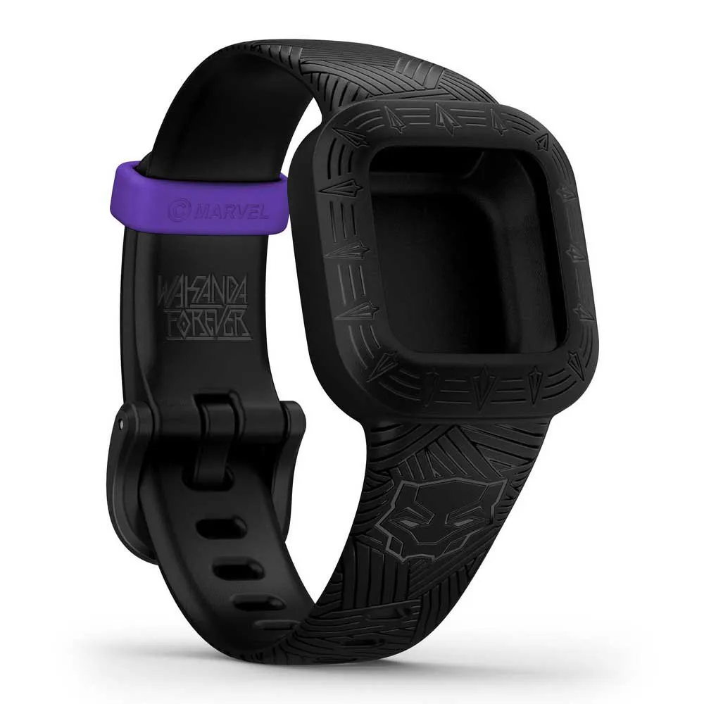 Laissez votre enfant découvrir les différents designs et personnages créés par le vívofit jr. 3 bandes accessoires. Celui-ci est inspiré de Black Panther, le roi et protecteur de Wakanda. L'achat d'un nouveau groupe permet à votre enfant d'avoir accès à un tout nouveau monde d'aventures d'application1. Le groupe correspond à l'expérience d'aventure de l'application sur l'application mobile contrôlée par les parents.