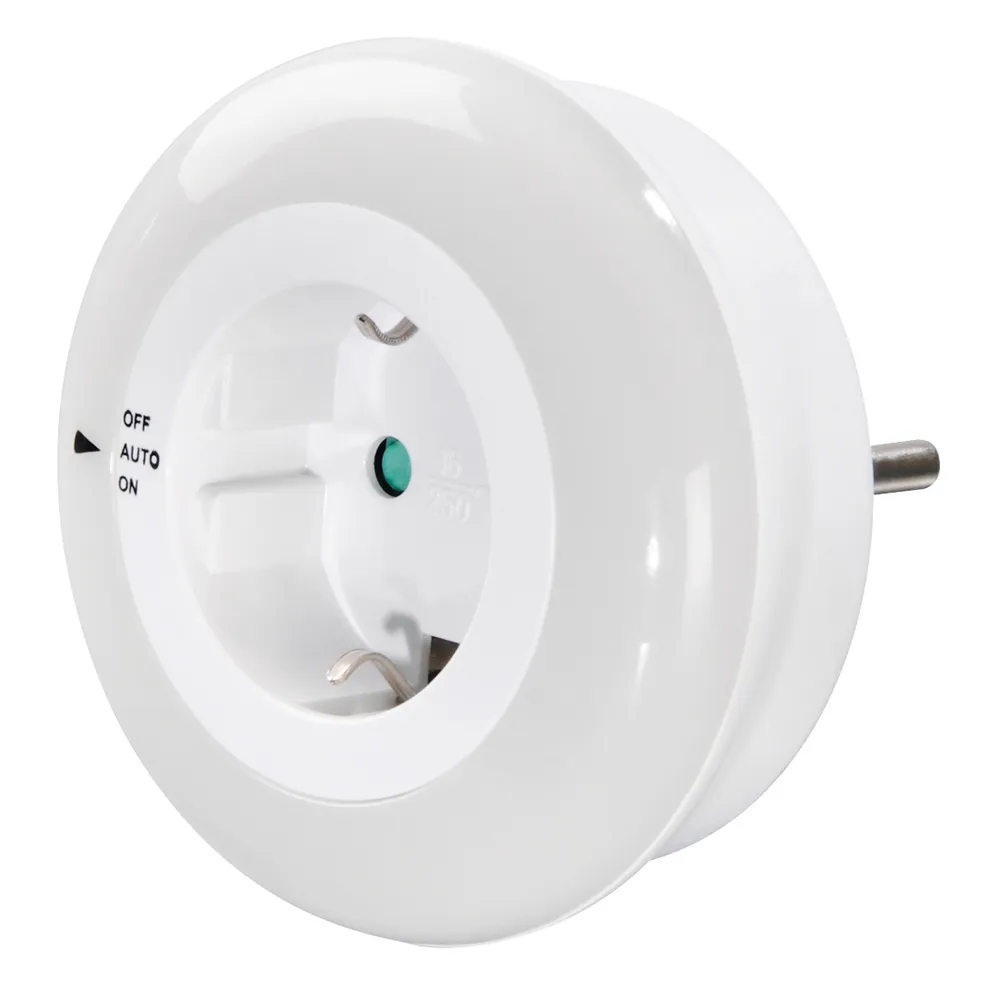 -Veilleuse et lumière d´orientation LED à faible consommation avec capteur crépusculaire et prise intégrée avec protection renforcée contre les contacts accidentels pour les chambres d´enfants, les couloirs, les sous-sols, etc. - Le capteur de lumière intégré réagit automatiquement à la lumière de la pièce et régule l´éclairage nocturne en conséquence.