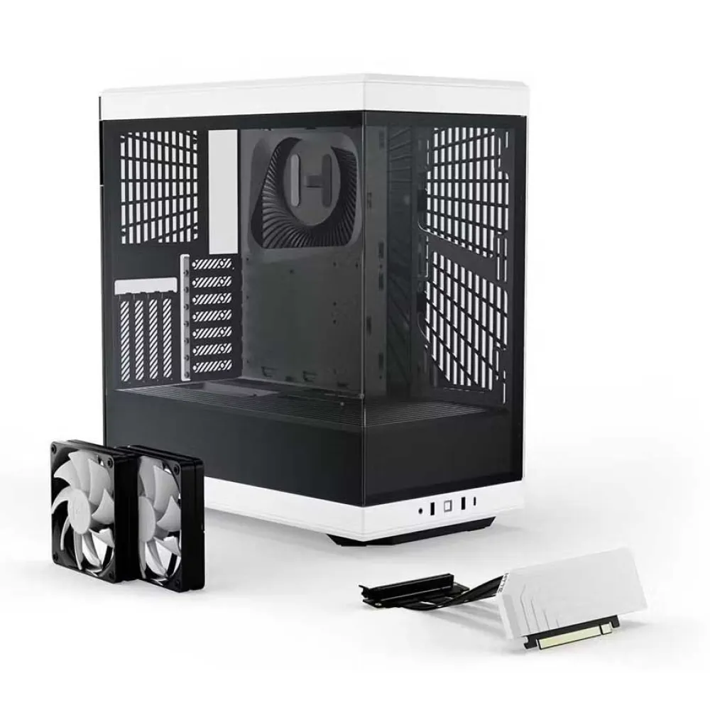 - Le Y40 est livré avec 2 ventilateurs de 120 mm préinstallés, un sous le plancher et un à l´arrière. Le support latéral peut accueillir jusqu´à un radiateur de 280 mm avec une épaisseur combinée de 120 mm, permettant l´utilisation de radiateurs plus grands de plus de 60 mm pour des configurations de boucle personnalisées, et le support supérieur peut accueillir jusqu´à un radiateur de 360 mm pour des configurations à double radiateur. Le Y40 prend également en charge les grands refroidisseurs à air de plus de 180 mm de hauteur, permettant presque tous les refroidisseurs de processeur sur le marché.