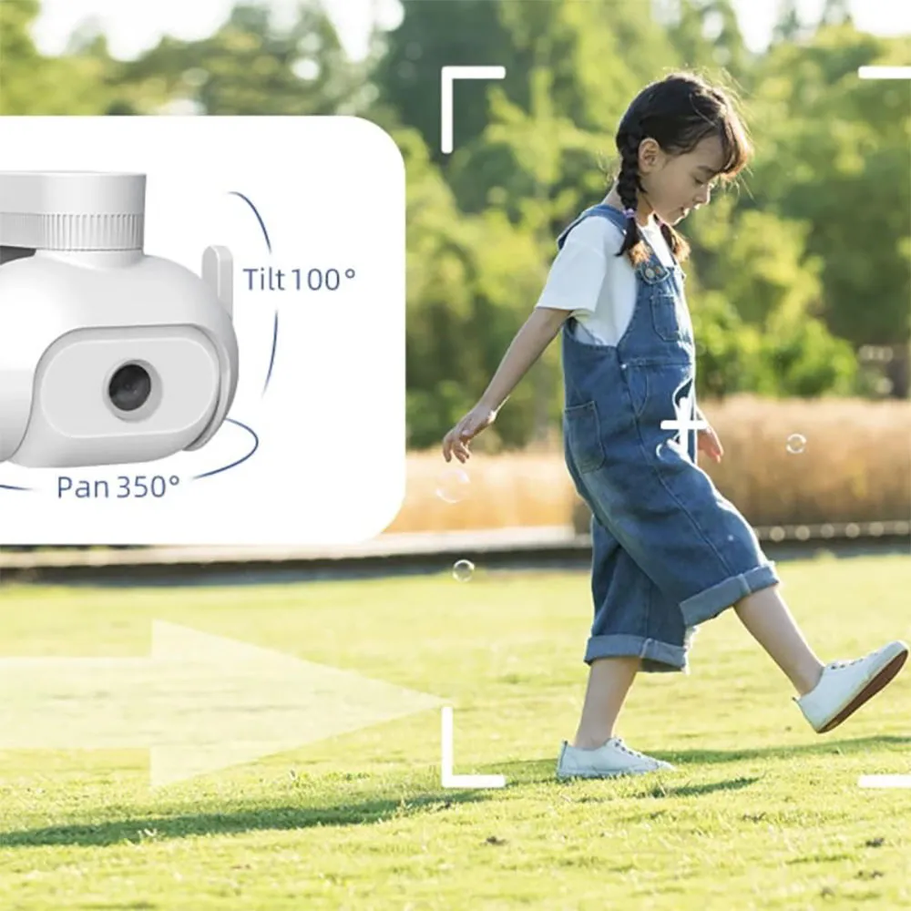 D´autre part, il s´agit d´une caméra dotée d´une puce qui possède une détection de mouvement, elle peut donc suivre toute personne se trouvant dans le jardin et toujours l´avoir dans le cadre.