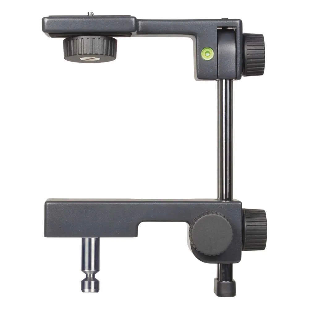 Le porte-caméra tourne à ± 90° et peut être bloqué dans toutes les positions. Avec niveau à bulle pour un réglage fin.