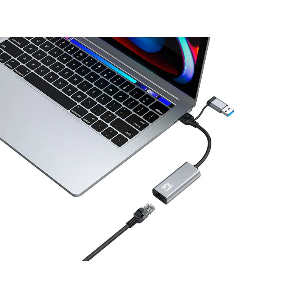 L´adaptateur réseau USB-0423 2.5 Gigabit Ethernet 2-en-1 USB-C/A de LevelOne vous permet de vous connecter facilement à Internet via le port USB-C/A intégré de votre ordinateur portable.