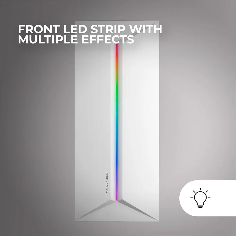- Le design frontal du MC-BLAZE intègre une bande LED avec des effets d´éclairage préréglés, offrant une esthétique moderne et saisissante sans nécessiter de configuration supplémentaire. Sa finition texturée brossée rehausse son style minimaliste, ajoutant une touche moderne et élégante à votre configuration.