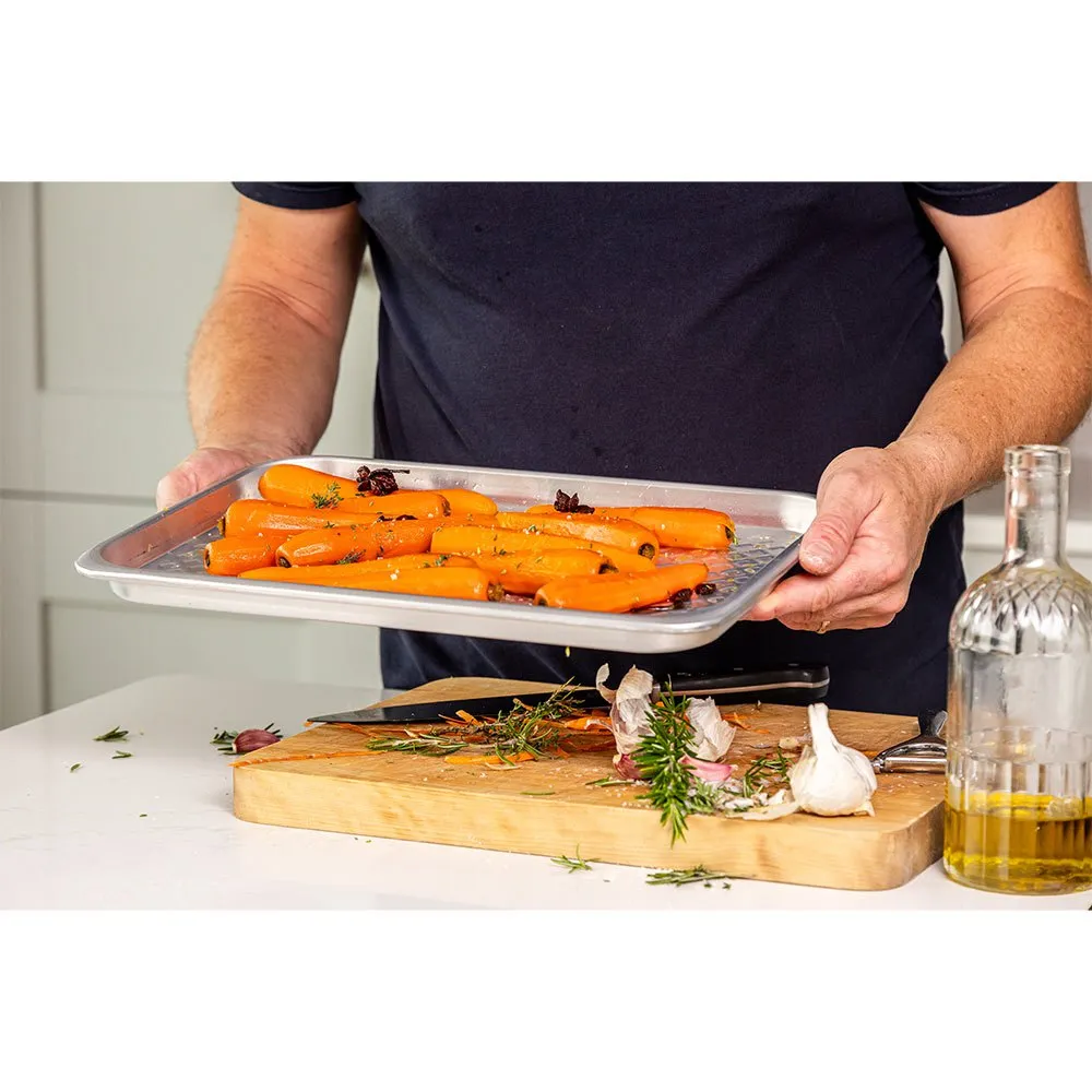 Maîtrisez vos cuissons au four avec cette grande plaque de cuisson de la collection en aluminium recyclé MasterClass.