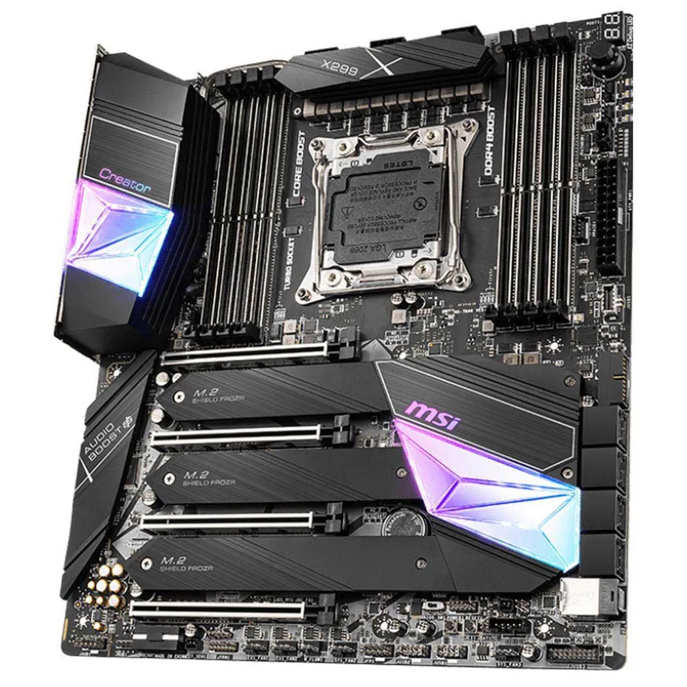 Creator X299 est livré avec un look et une sensation uniques inspirés par le métier du cristal. Doté de fonctionnalités exclusives pour libérer les performances globales d'un incroyable processeur multi-cœurs.