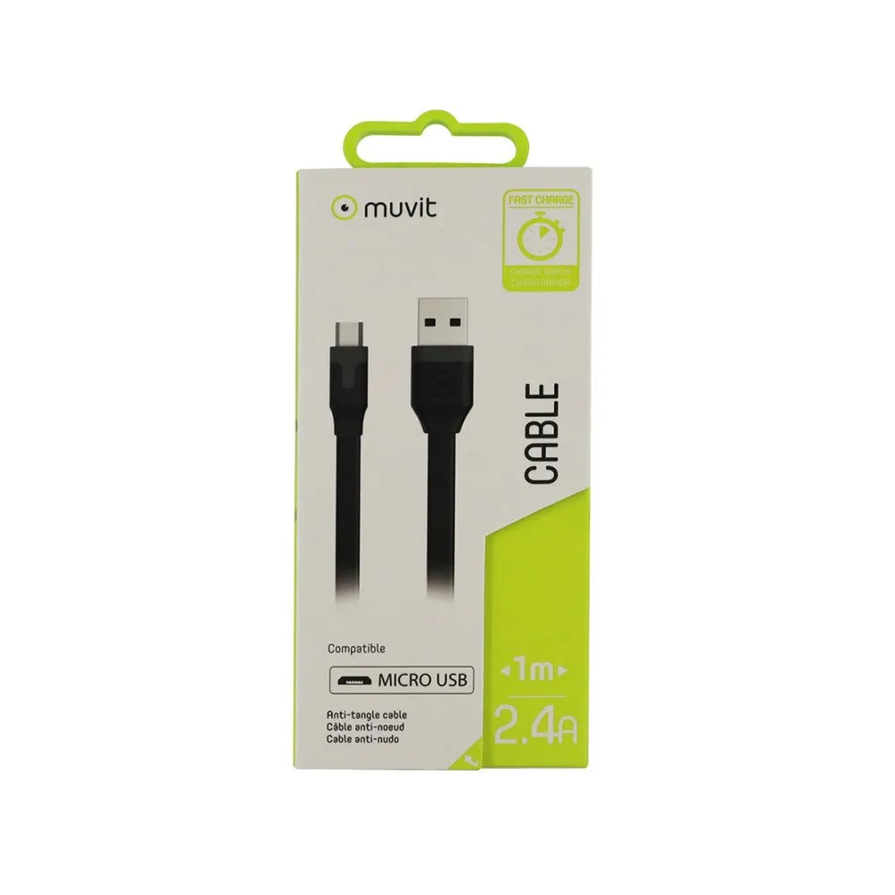Câble USB Micro USB Muvit 2.4A 1m noir.