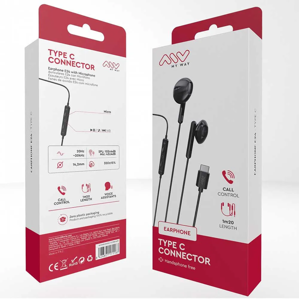 En bref, les écouteurs stéréo pour smartphone MyWay Type C avec microphone sont une bonne option pour ceux qui recherchent une solution audio filaire avec microphone pour leur appareil Android ou tout autre appareil compatible avec un port USB Type C. De plus, son design En noir, il lui donne une touche élégante et moderne.