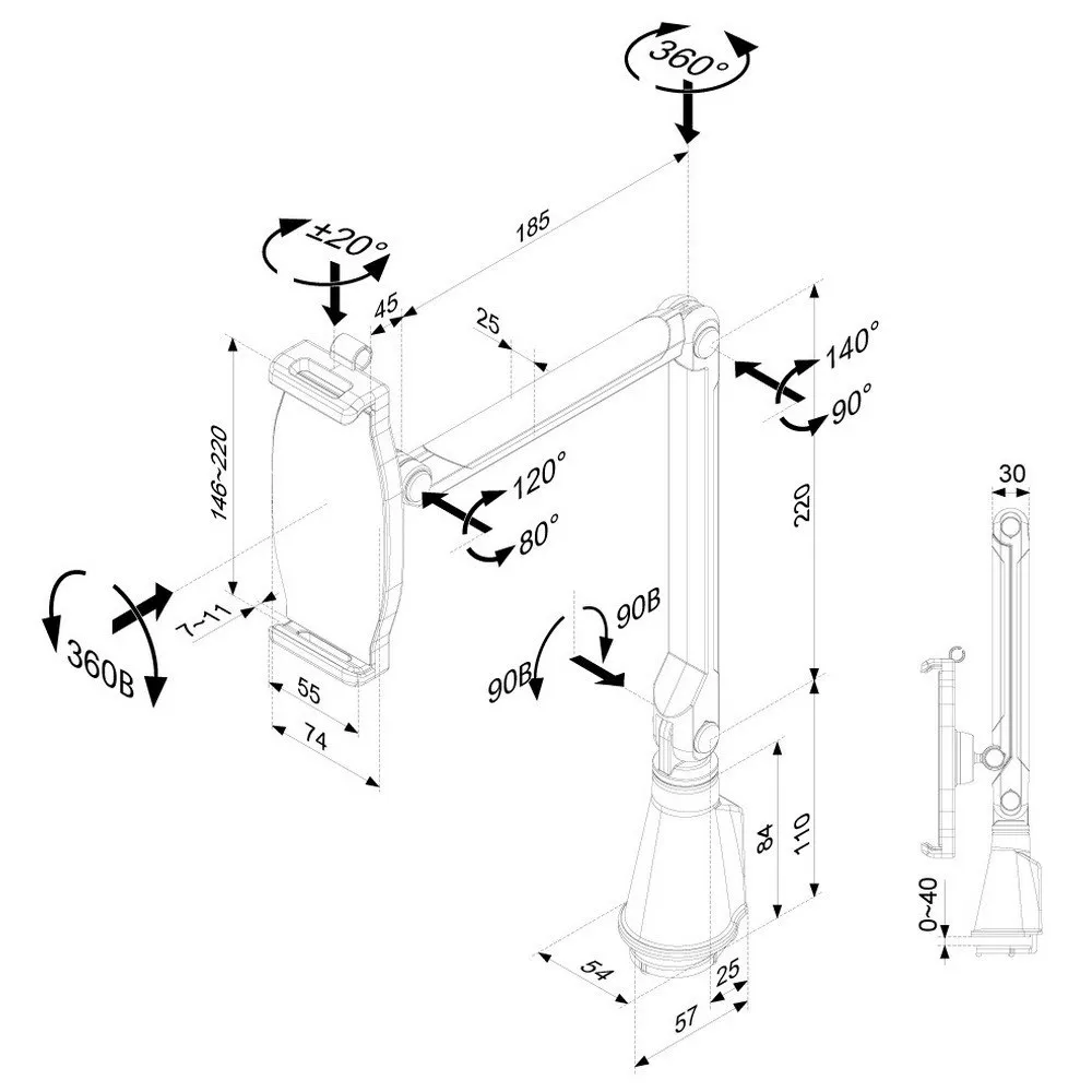 Le support de tablette NewStar, modèle TABLET D100SILVER est un support de tablette universel offrant une fonctionnalité maximale de la tablette. Taille du produit 146 220 mm (largeur) x 7 11 mm (profondeur), disponible pour: iPad, Samsung et autres tablettes universelles. Installez le support de tablette à l'aide d'une pince de bureau. Ce support universel devient un outil puissant permettant le réglage de l'inclinaison, du pivotement, de la rotation, de la hauteur et de la profondeur. Le support a été conçu pour les utilisateurs gauchers et droitiers. La plupart des tablettes conviennent à ce support. En utilisant un support ergonomique au cou et au dos, les plaintes peuvent être évitées. Idéal pour une utilisation dans les bureaux et sur les comptoirs ou dans une zone de réception.