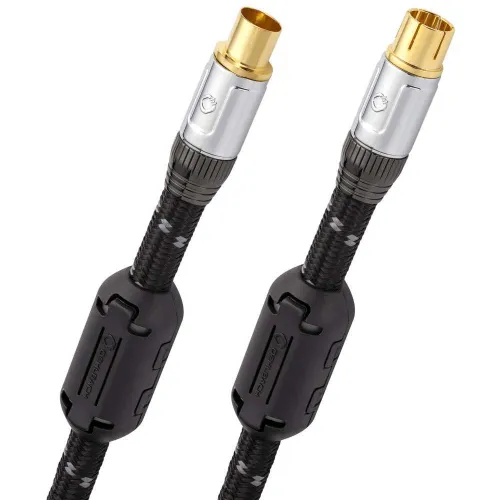 Câble d'antenne numérique haut de gamme pour la transmission de données audio et d'images haute résolution. Les interférences externes n'ont aucune chance grâce à l'utilisation d'un filtre de courant à gaine très compact. Le conducteur intérieur de ce câble d'antenne cinq étoiles est fabriqué à partir de cuivre Hpocc® hautement pur et sans oxygène, son blindage quintuple signifie que sa transmission de signal est presque parfaite et sans perte. La prise entièrement métallique blindée aide à rendre la transmission des signaux HDTV hautement sensibles extrêmement stable, en particulier lors des transitions matérielles critiques.