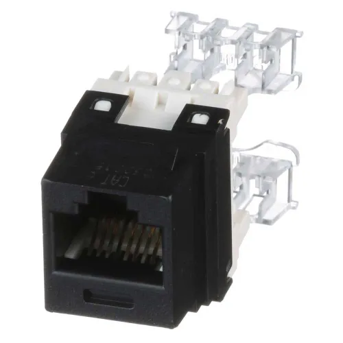 Le module de prise jack Keystone Punchdown RJ45 UTP Cat 6 NetKey® est conçu pour terminer un câble à paires torsadées 22 26 AWG à 4 paires. Chaque module est testé à 100 % en usine pour dépasser les exigences de performance standard de l'industrie. Les contacts sont plaqués avec 50 micropouces d'or pour des performances supérieures. Les prises sont sérialisées individuellement et sont compatibles avec les interfaces Keystone telles que les plaques frontales NetKey®, les panneaux de brassage modulaires et les boîtiers de montage en surface. Le module est noir.