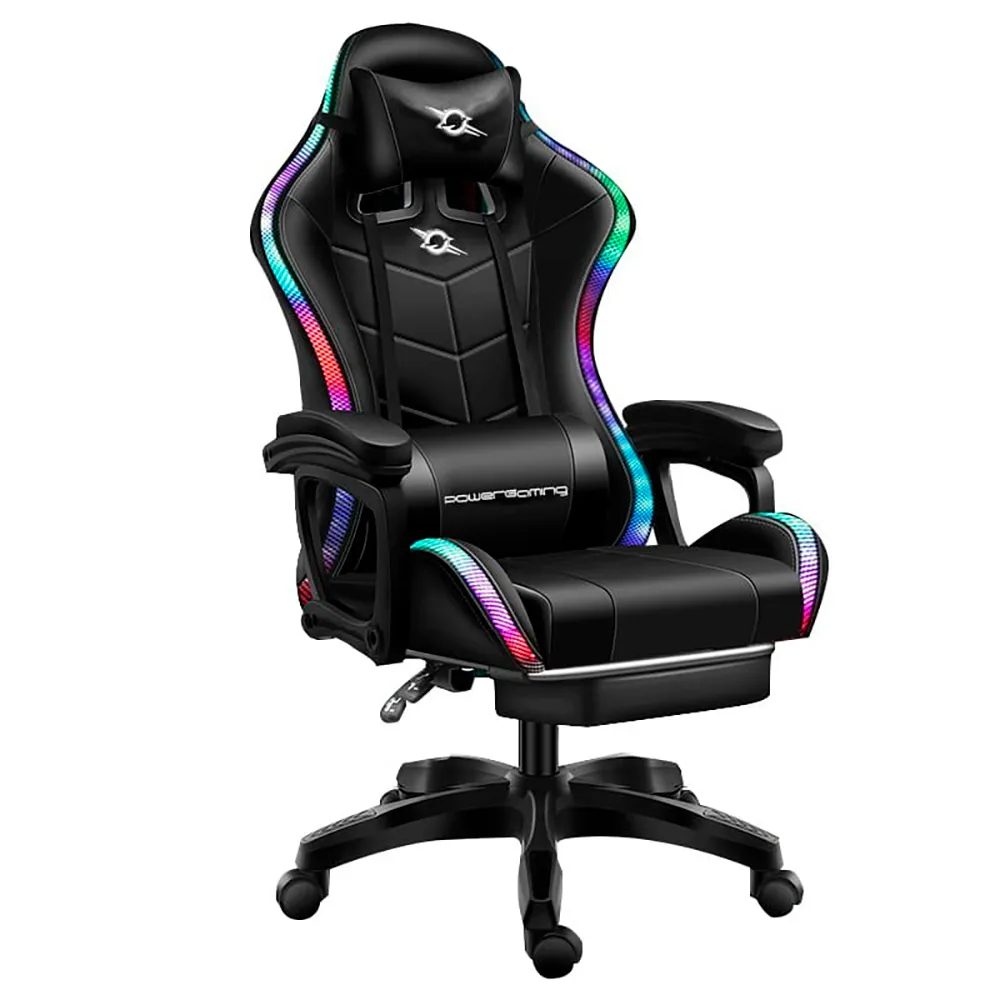- Cette nouvelle chaise gaming de PowerBasics vous offrira tout le confort dont vous avez besoin pendant des heures grâce à son design ergonomique, étant fabriquée avec des matériaux de qualité supérieure et dotée d´un rembourrage interne. Le tout accompagné d´une lumière LED RGB qui vous donne la meilleure image. Vous aurez l´air spectaculaire. De plus, elle a un style sportif avec le noir comme couleur principale. Créée avec des roues pour faciliter son mouvement, ainsi qu´avec des accoudoirs, un appui-tête, un support lombaire qui doublent son confort. Comme si cela ne suffisait pas, vous pouvez ajuster à la fois la hauteur et l´inclinaison du dossier pour l´adapter pleinement à vous. Incroyable est un euphémisme.