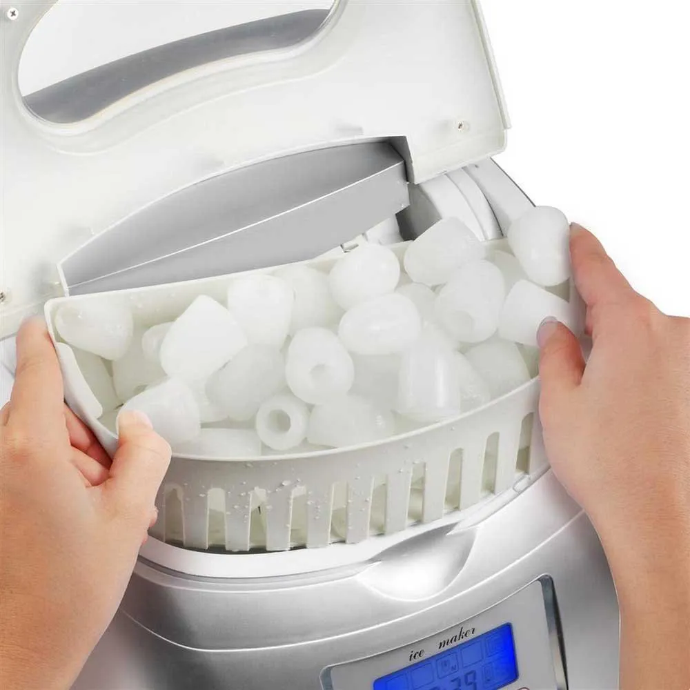 petit, moyen ou grand - Grand volume de 2,8 litres avec réservoir pour 800 grammes de glaçons - Couvercle de remplissage de sécurité avec fenêtre d´observation pour vérifier le processus - Écran LCD numérique avec panneau de commande facile Spécifications :