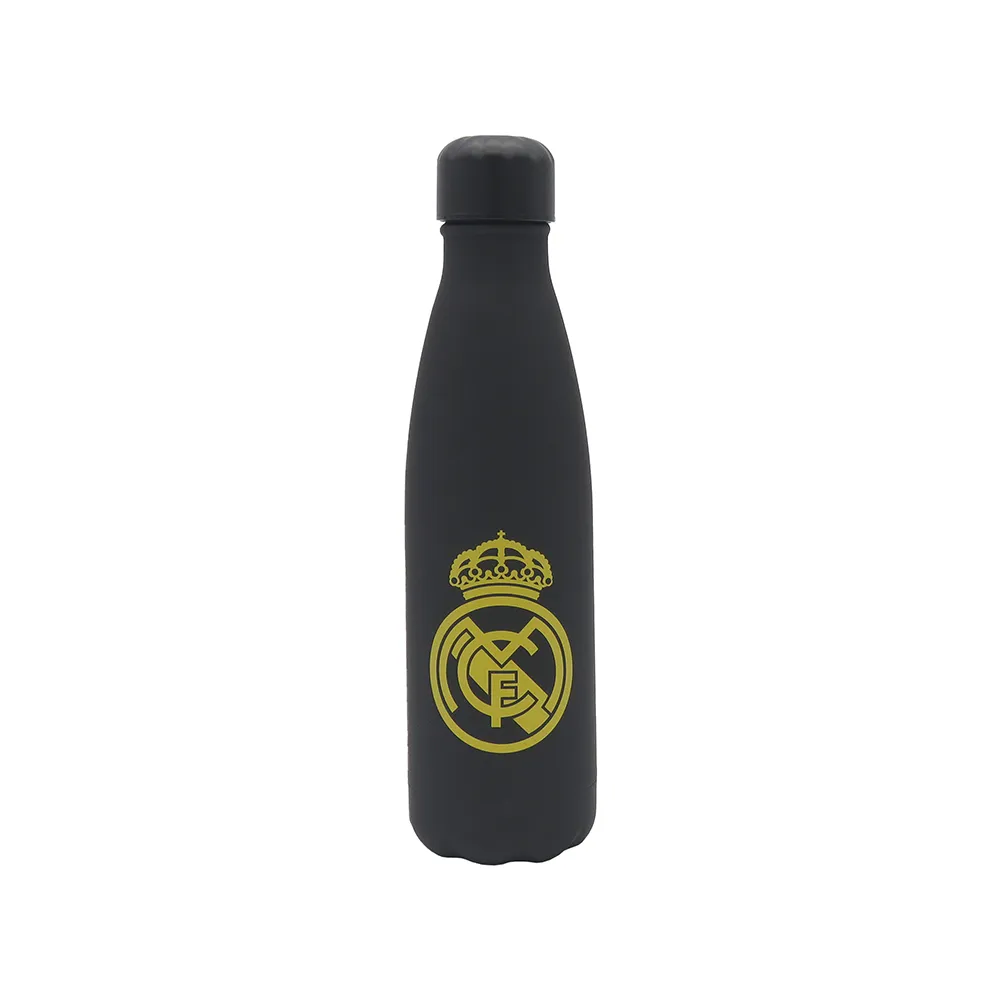 Produit : Bouteille Noire Real Madrid avec Double Paroi Dorée Caoutchoutée