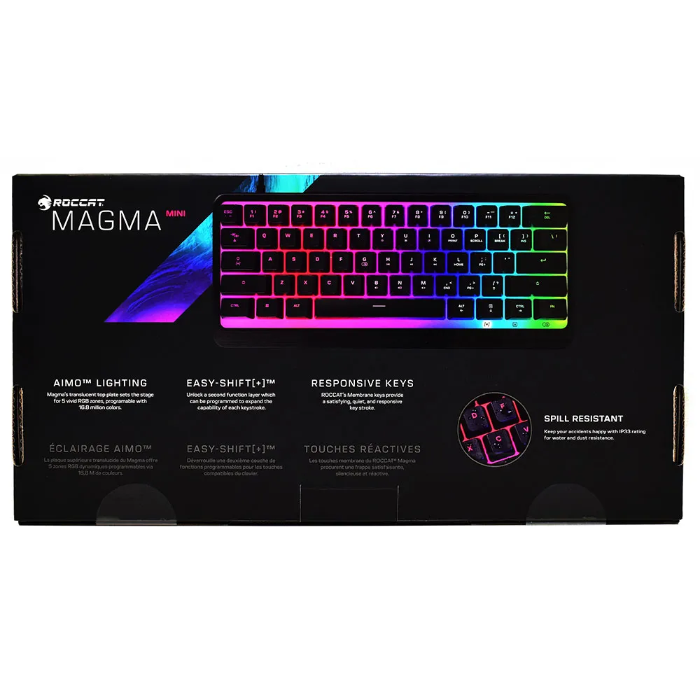 Découvrez un chef-d´œuvre visuel avec l´éclairage AIMO RGB signature de ROCCAT. Le Magma Mini est doté d´une superbe plaque supérieure translucide et d´un rétroéclairage à 5 zones, créant un spectacle de lumière vibrant et immersif avec 16.8 millions de couleurs. AIMO se synchronise intelligemment avec votre gameplay et d´autres appareils AIMO compatibles, produisant un écosystème d´éclairage dynamique qui passe d´un appareil à l´autre, donnant vie à toute votre configuration.