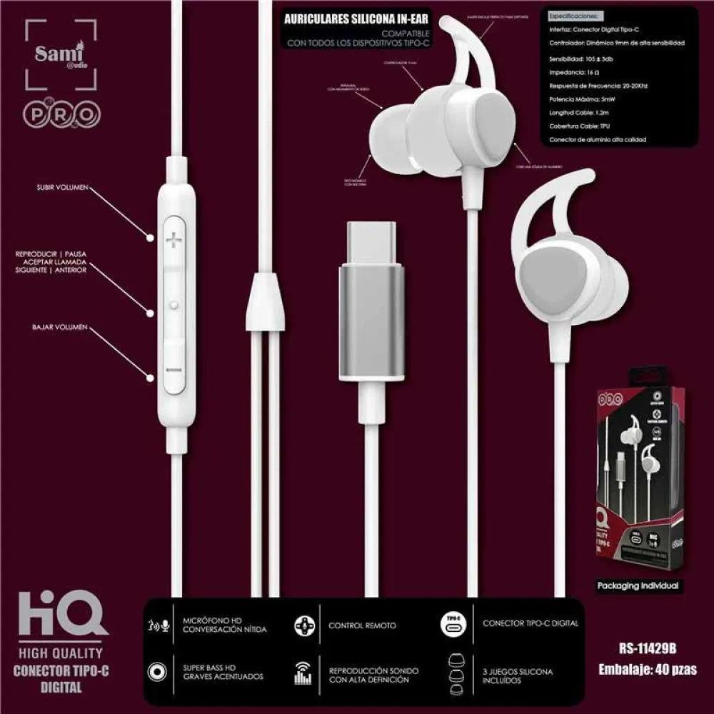 Rehaussez votre expérience d´écoute avec les écouteurs SAMI RS11429B Type C. Commandez les vôtres dès aujourd´hui et découvrez la différence qu´un audio de qualité peut faire