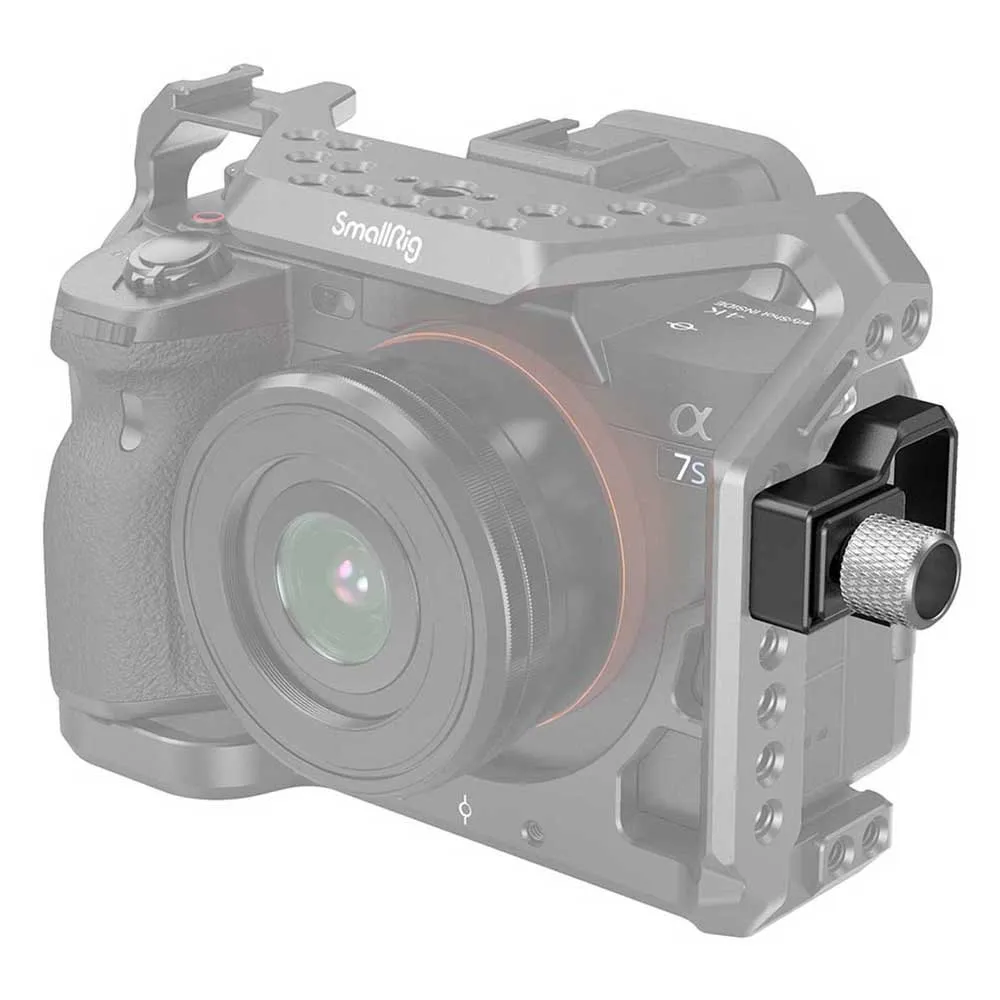 Le serre-câble HDMI SmallRig pour A7S III Cage 3000 est compatible avec SmallRig Cage 2999. Conçu pour empêcher le câble HDMI de la caméra de se déconnecter accidentellement, ce serre-câble se fixe sur le côté de la cage à l'aide d'une vis 1/4'' 20 et de deux anti tordre les épingles. La vis moletée 1/4´´ 20 facile à saisir ajuste un bloc coulissant qui peut être serré pour accueillir un câble HDMI de différents diamètres. Ce serre-câble est fabriqué en alliage d'aluminium robuste et est livré avec une clé Allen.