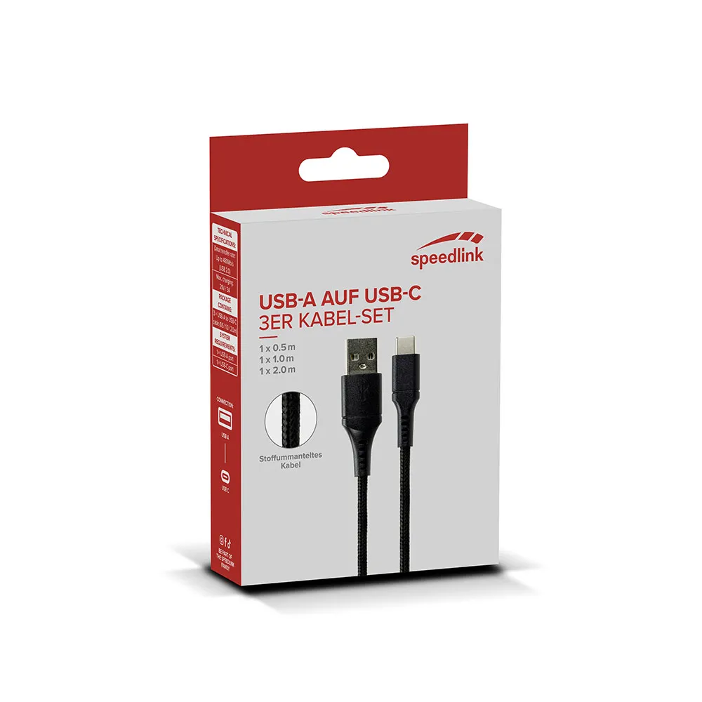 Titre : Speedlink - Ensemble de câbles USB-A vers USB-C, noir.