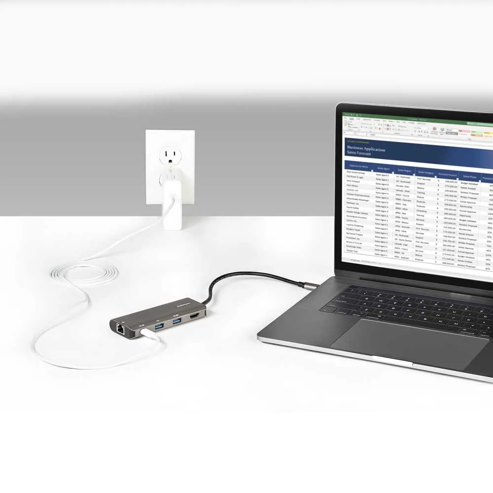 L´adaptateur multiport USB Type-C fournit une sortie vidéo HDMI 4K, un port USB Type-C (données/alimentation), deux ports USB 3.2 Gen 2 Type-A (10 Gbit/s) et un port Gigabit Ethernet, le tout via une seule connexion au port USB-C ou Thunderbolt 3 de votre ordinateur portable.