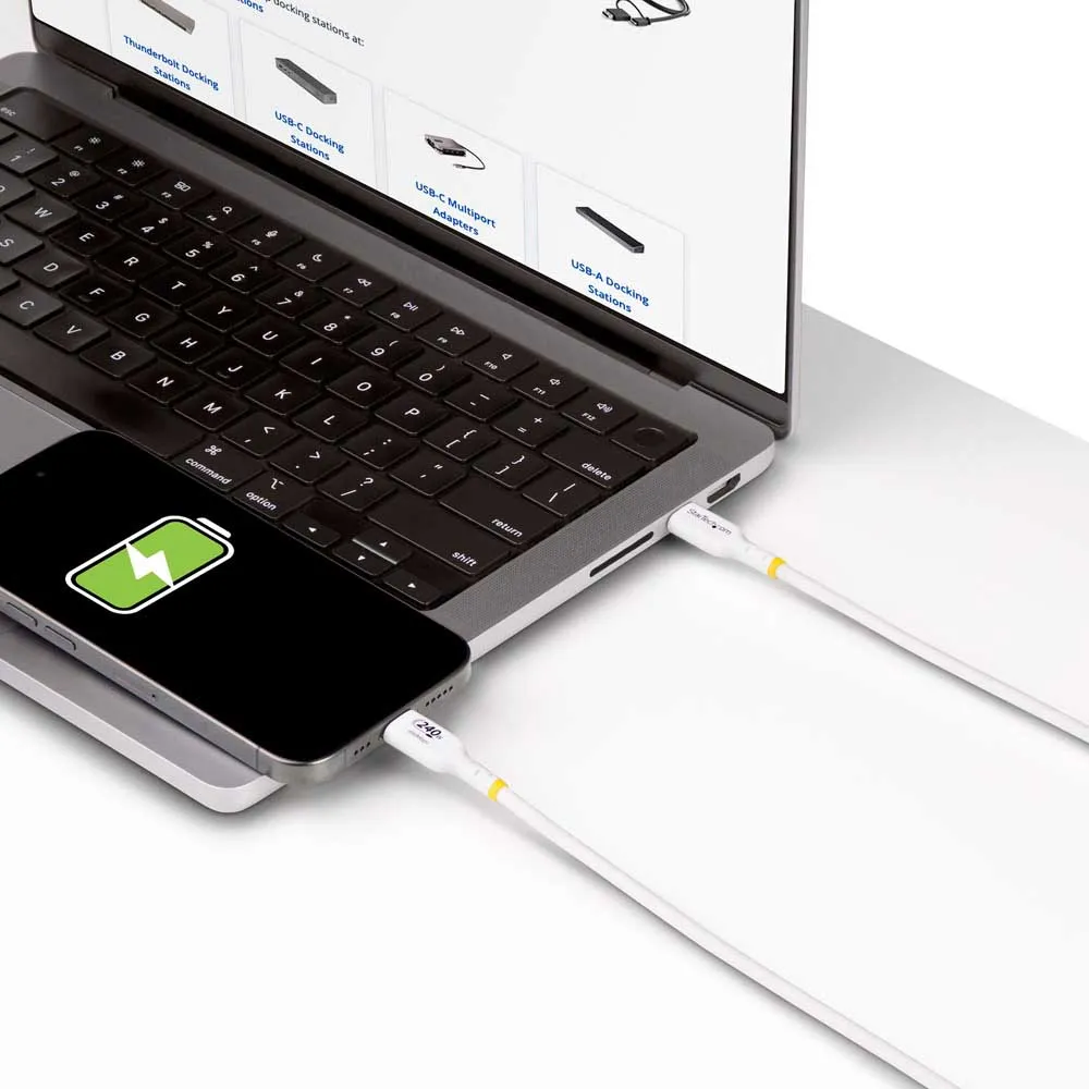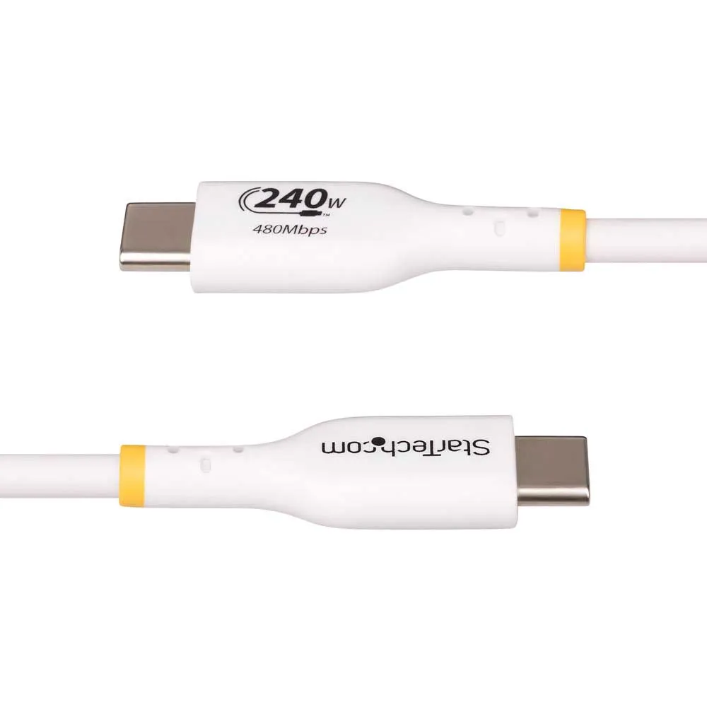 Câble de charge pour ordinateur portable Startech.Com 2M USB-C - Câble pour ordinateur portable USB Type-C USB 2.0 - Blanc - Câble certifié USB-IF - PD 240W EPR - Revêtement TPE - M/M.