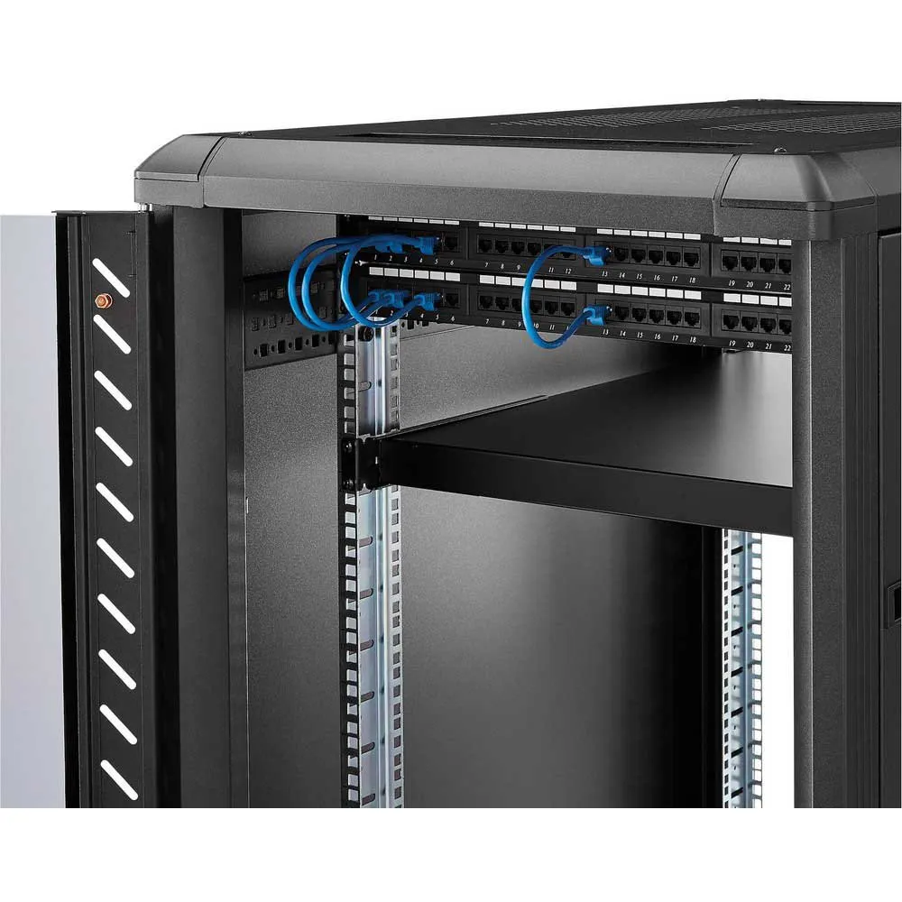 - Les supports de profondeur de montage réglables facilitent l´ajout d´une étagère de stockage à une grande variété de racks ou d´armoires.