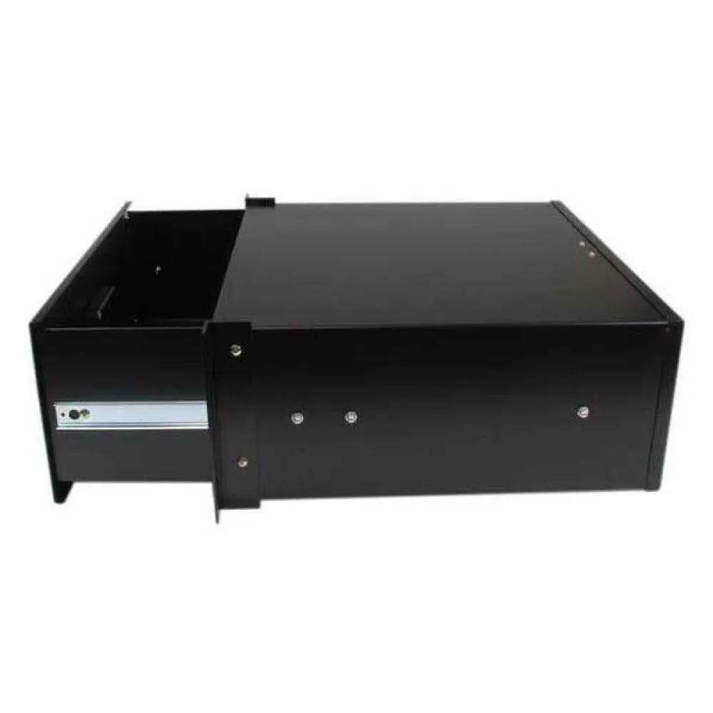 Tiroir de rangement en acier noir 4U pour baies et armoires de 19 pouces.