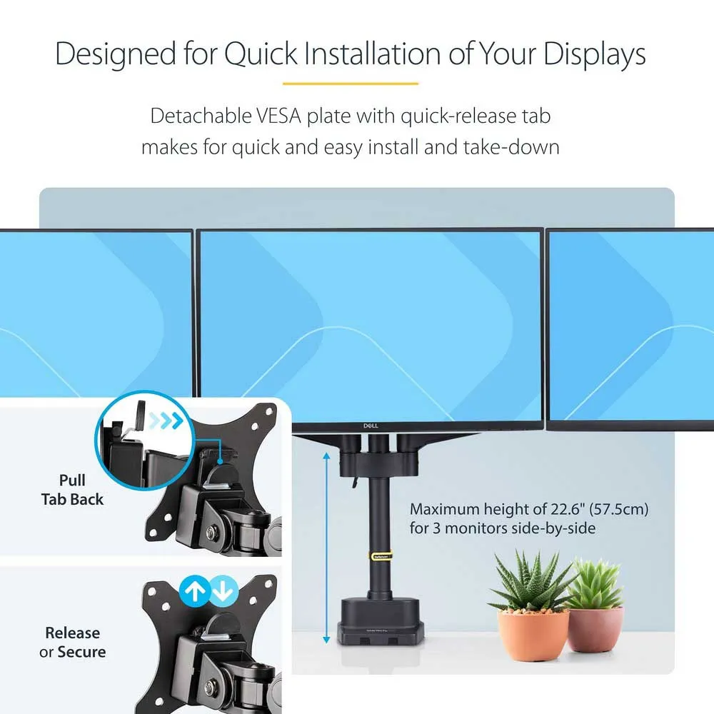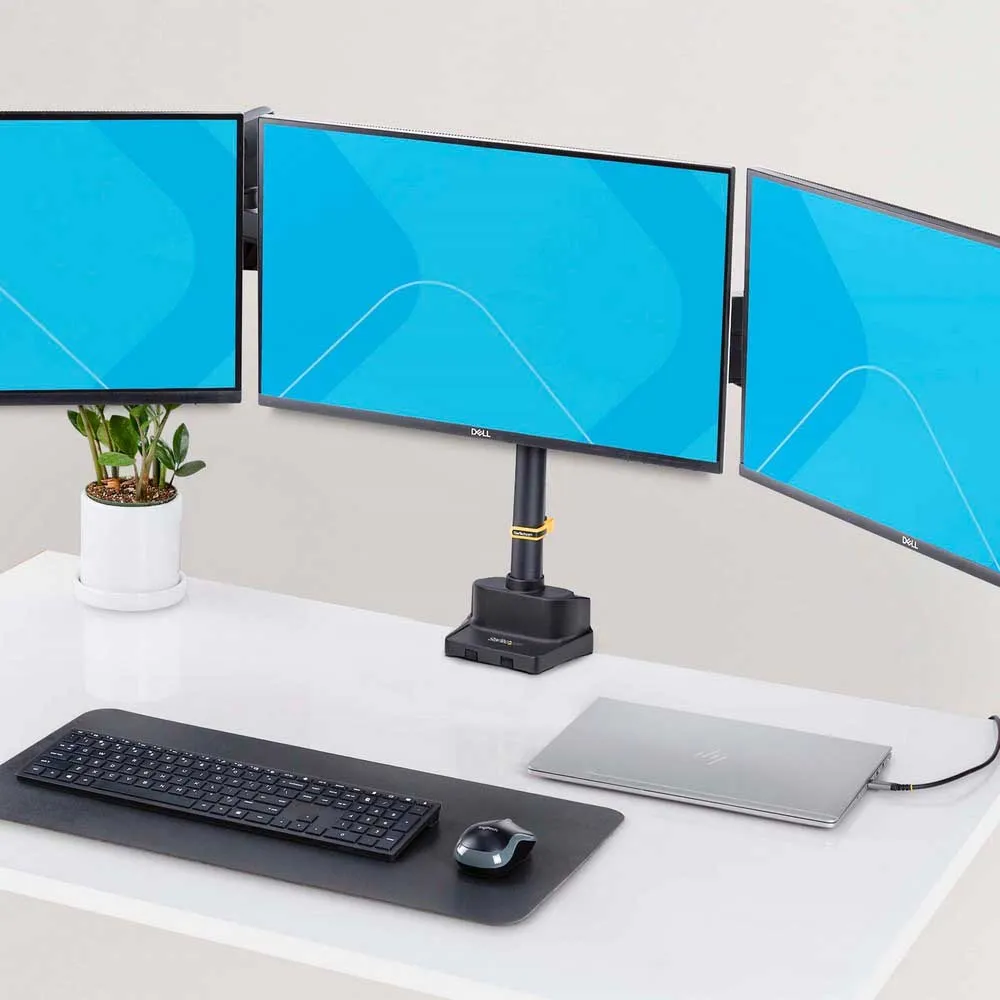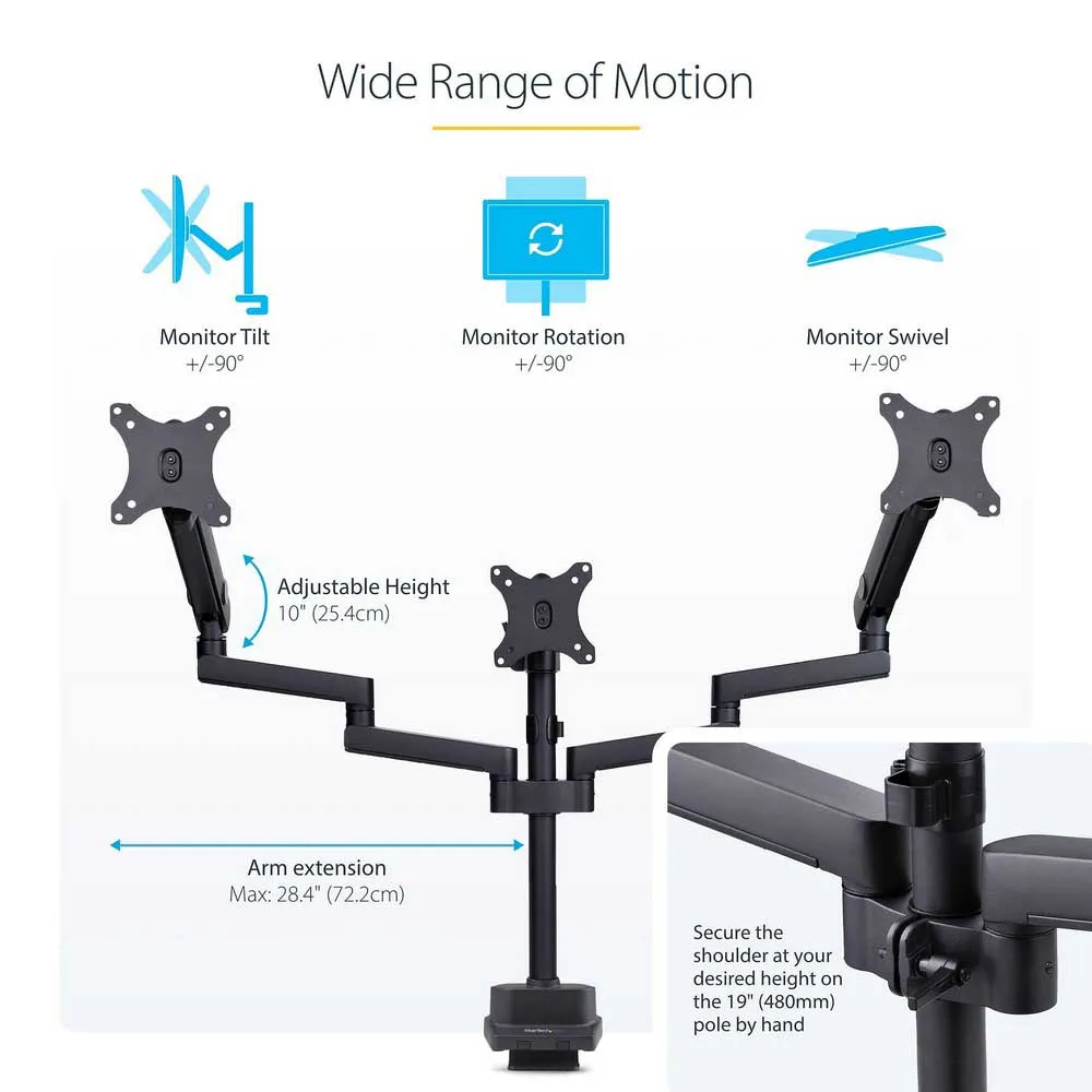 Support de bureau Startech.Com pour 3 écrans Vesa 75X75/100X100 27 pouces - Fixation par œillet ou serre-joint - Ajustement sans outil - Bras à ressort.