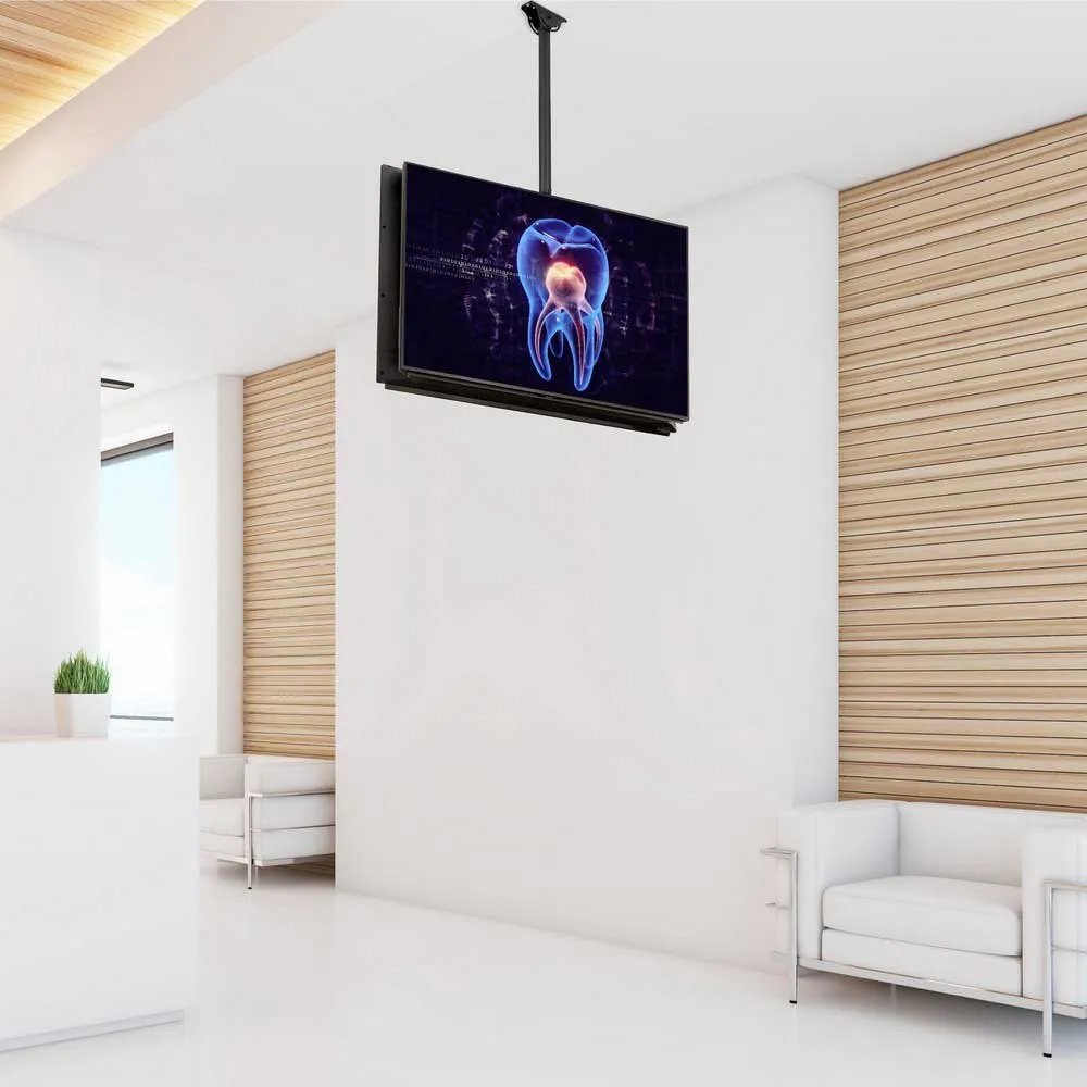 Créez une signalisation numérique impressionnante et efficace avec ce support de télévision au plafond, en suspendant deux téléviseurs de 32 à 75 pouces, dos à dos. Idéal pour les espaces ouverts dans la vente au détail, l'hôtellerie, les restaurants et de nombreux autres domaines, le support à double écran offre un moyen polyvalent d'informer les clients et double l'audience qui regarde votre contenu.