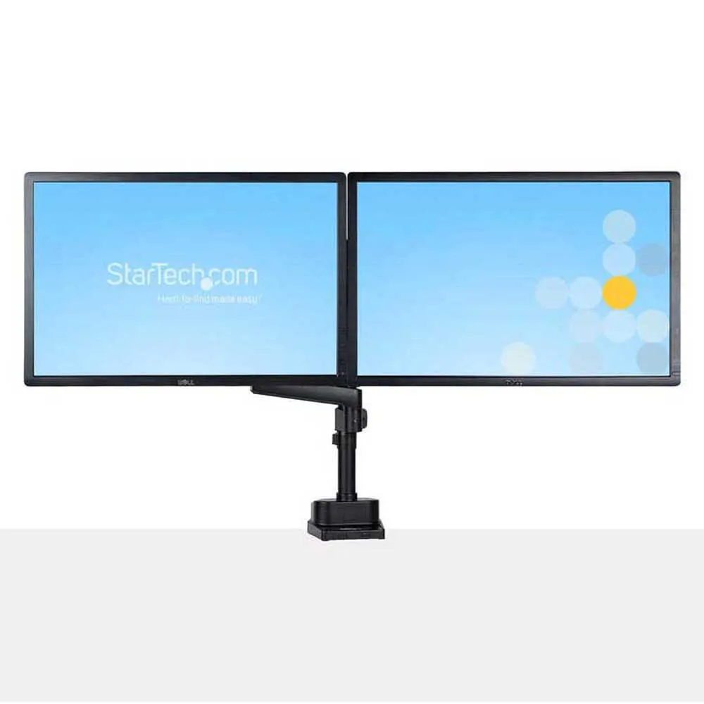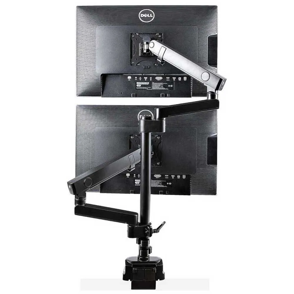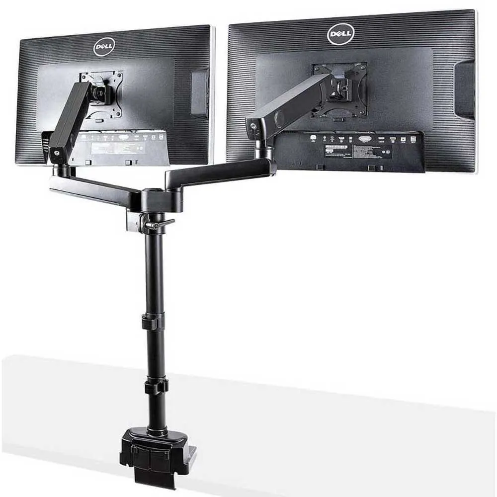 - Ce bras de bureau à double écran libère de l'espace en vous permettant de monter vos écrans au-dessus de votre bureau ou de votre table. Pour la gestion des câbles, il y a un clip et un canal le long de chaque bras pour acheminer vos câbles et garder votre poste de travail organisé et professionnel.