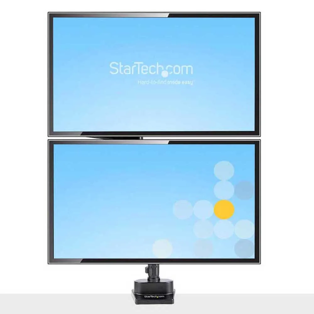 Ce support de bureau à bras double pour écran vous permet de monter deux écrans jusqu'à 32 pouces. Les bras se fixent et s'empilent séparément sur le poteau et sont facilement réglables pour un placement horizontal ou vertical des moniteurs. Sa construction en acier rend ce bras de moniteur capable de supporter 8 kg chacun avec deux options de montage incluses (pince en C ou œillet) pour fixer solidement vos moniteurs à votre bureau.