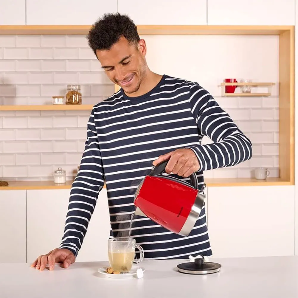 La bouilloire électrique Taurus Vintage Red chauffe rapidement 1.7 litre de liquide grâce à sa puissance de 2200 W, pour obtenir une infusion ou un thé confortable en peu de temps.