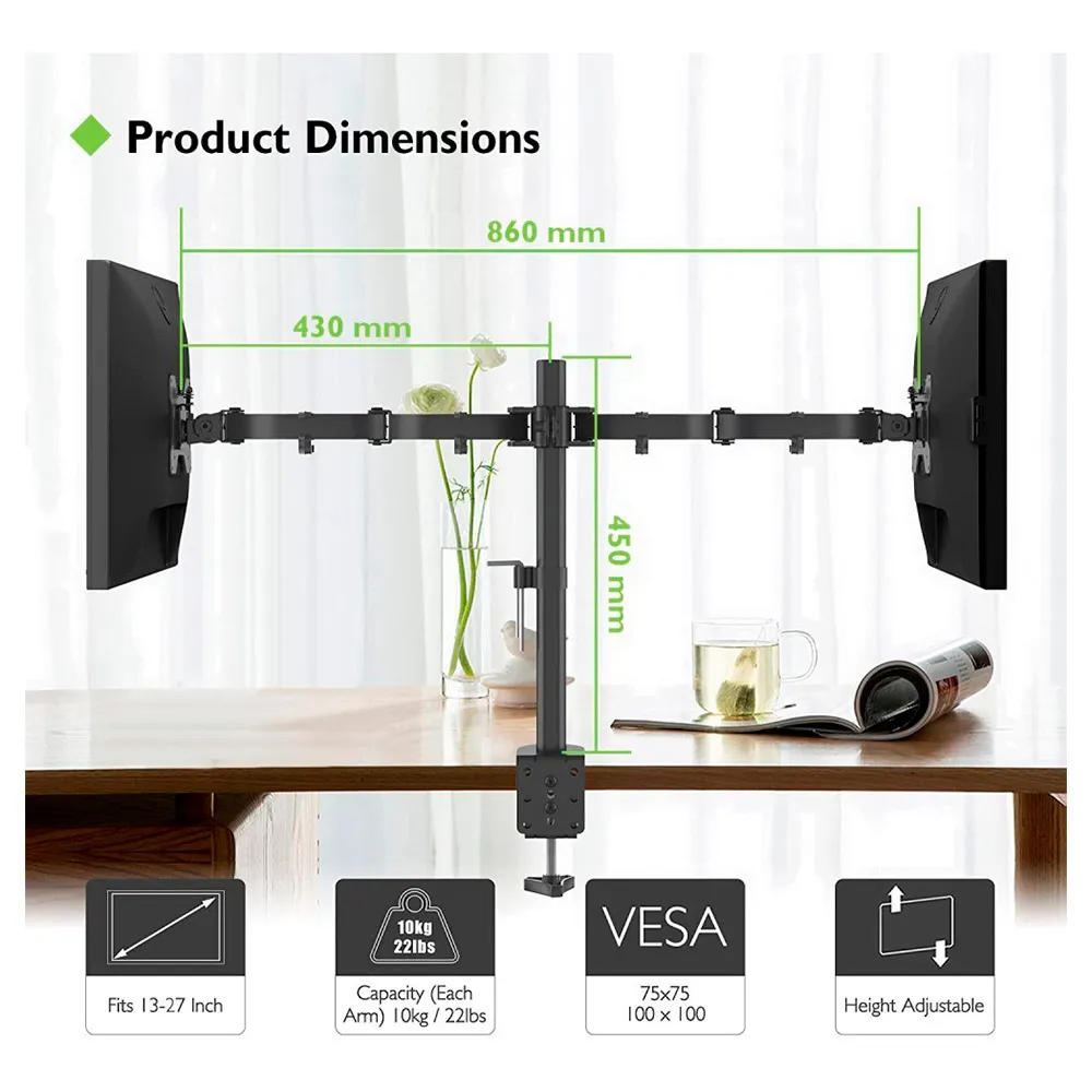 - Support / pied de moniteur Techly ICA-LCD 382-D 68.6 cm (27 pouces) Noir Bureau